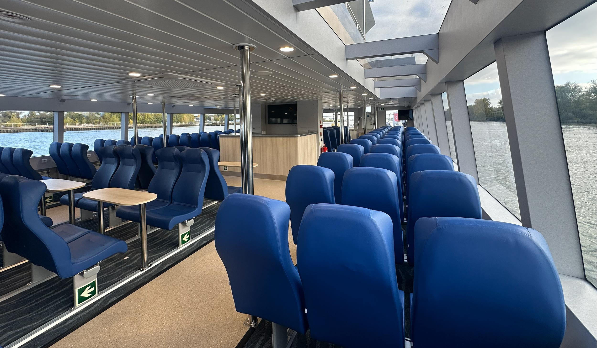 Voor de grote zeecruise schepen die afmeren aan de Wilhelminapier in Rotterdam, is het vervoer met RiverTender een slim alternatief. Eén schip betekent aanzienlijk minder busbewegingen.